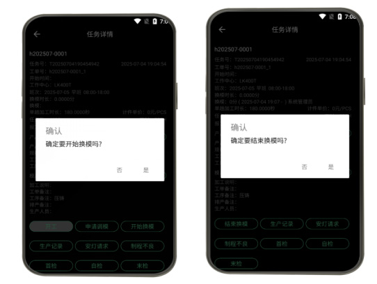工業(yè)級移動終端部署實現(xiàn)全工序數(shù)字化閉環(huán):智能開工驗證(任務(wù)自動校驗/工藝參數(shù)確認(rèn)/電子作業(yè)指導(dǎo)書調(diào)取)與精準(zhǔn)報工管理(即時報工/不良品錄入/機器計數(shù))的無縫協(xié)同